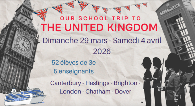 Informations concernant le voyage en Angleterre du 29 mars au 04 avril 2026